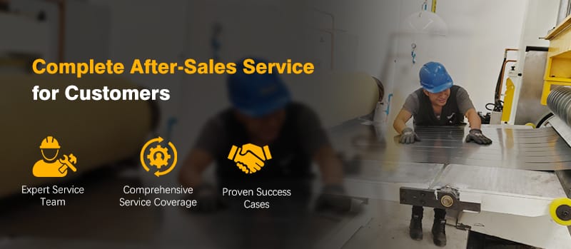 “ให้ลูกค้าได้รับบริการหลังการขายแบบครบวงจร”เครื่องตัดเหล็ก KINGREAL มีทีมงานบริการหลังการขายที่มีชื่อเสียงซึ่งสามารถให้บริการหลังการขายได้ครบถ้วนตามความต้องการของลูกค้า ซึ่งรวมถึงคำแนะนำในการติดตั้งออนไลน์ บริการคำแนะนำจากโรงงานของลูกค้า คำแนะนำการใช้งานเครื่องจักร และคำแนะนำในการบำรุงรักษา ฯลฯ ในปี 2023 บริการหลังการขาย KINGREAL STEEL SLITTER ในโรงงานของลูกค้าเครื่องตัดม้วนโลหะในซาอุดีอาระเบียได้รับการยอมรับอย่างสูงจากลูกค้า