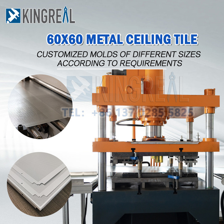 สายการเจาะกระเบื้องเพดานโลหะ KINGREAL STEEL SLITTER สามารถผลิตข้อกำหนดต่างๆ ของเพดานที่มีรูพรุน เช่น 300x300 มม., 600x600 มม., 1200x600 มม. เป็นต้น ซึ่งใช้กันอย่างแพร่หลายในโครงการตกแต่ง